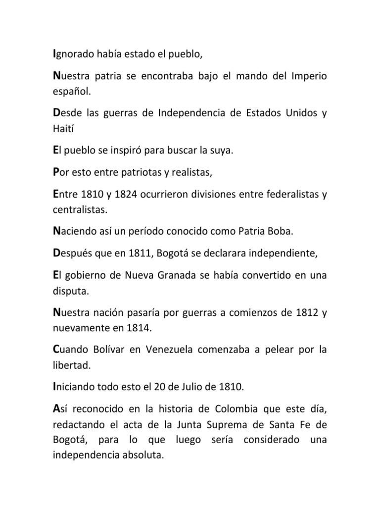 Acrostico Del 20 De Julio Independencia De Colombia - El 20 de mayo es recibido como miembro correspondiente de la academia mexicana de la lengua y presentó la iniciativa del diccionario tecnológico.. 42 el 3 de julio de ese mismo año le da la despedida a josé vasconcelos, su amigo y compañero del ateneo de la juventud, quien estaba hasta entonces a cargo de la secretaría pública. El 20 de mayo es recibido como miembro correspondiente de la academia mexicana de la lengua y presentó la iniciativa del diccionario tecnológico.